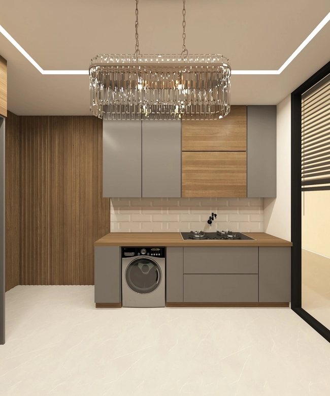 در انتهای مطبخ، فضایی بلااستفاده وجود داشت که با شناخت دقیق روحیات کارفرما و علاقه ایشان به طبیعت، به یک حیاط خلوت کوچک با فلاورباکس های دیواری و سنگ هایی با حس طبیعی تبدیل شد. این مداخله ظریف، فضایی دنج و دلنشین را پدید آورد که یکی از نقاط شاخص پروژه به شمار می رود.