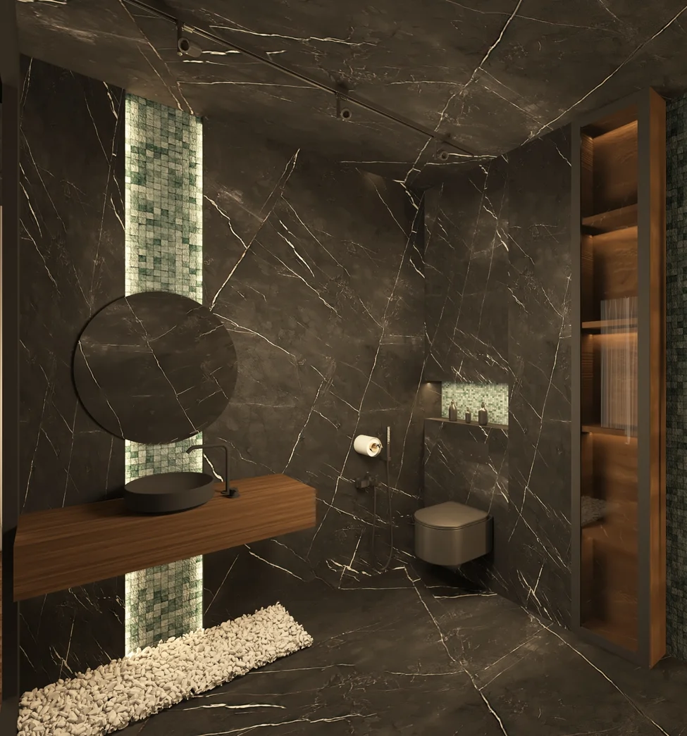 رنگ مشکی در این پروژه نه به عنوان یک عنصر تزئینی صرف، بلکه به مثابه ابزاری مفهومی در طراحی به کار گرفته شد. چالش اصلی، ایجاد تعادل میان قدرت بصری این رنگ و حفظ روشنایی، عمق و سرزندگی فضاها بود. ترکیب هوشمندانه مشکی با متریال های طبیعی، نورپردازی هدفمند و سطوح روشن تر، این امکان را فراهم کرد تا فضاها ضمن داشتن هویت قوی، همچنان پویا و قابل زیست باقی بمانند.