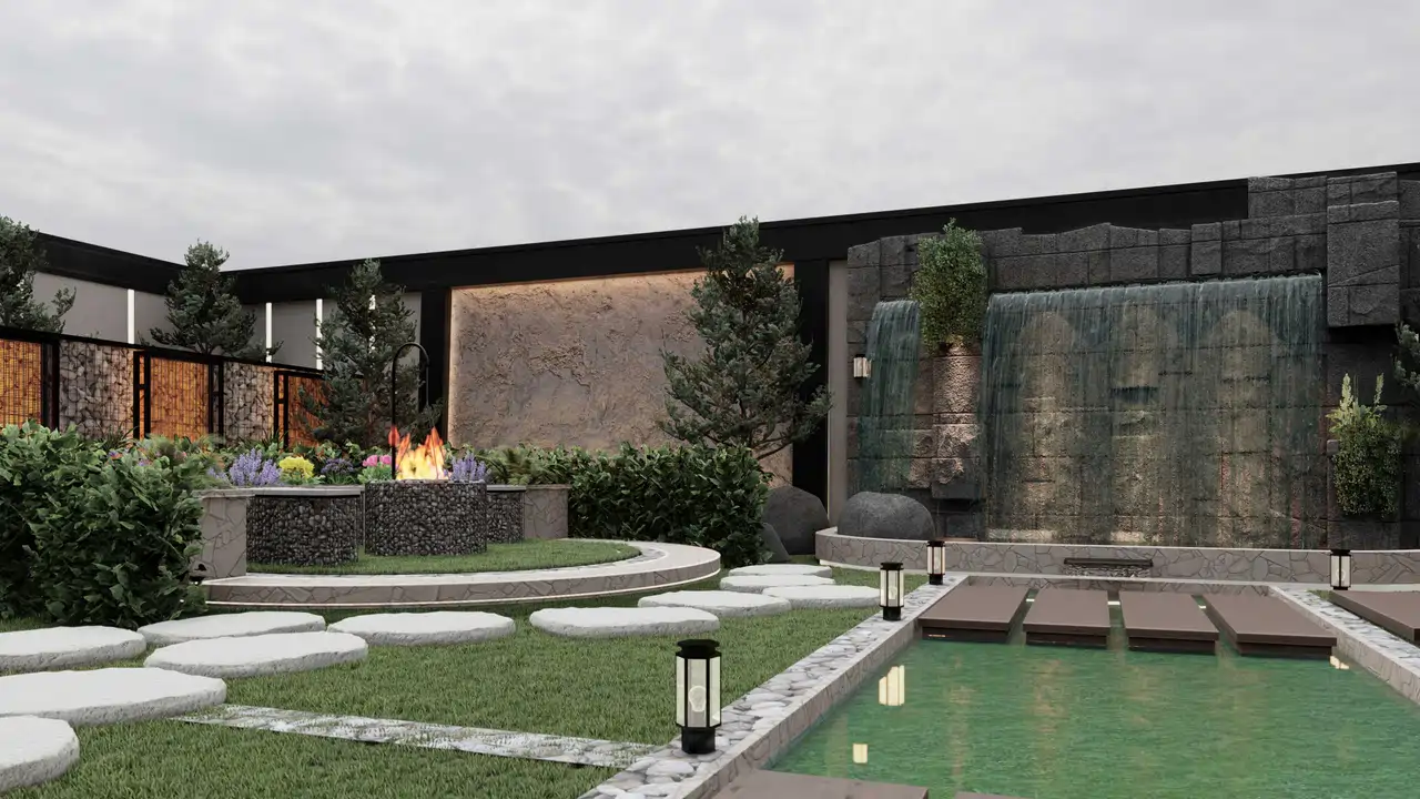 طراحی محوطه ویلای سیاخ دارنگون شیراز نمونه ای از ایجاد تعادل میان معماری مدرن و طبیعت است. فضایی که تنها برای دیده شدن طراحی نشده، بلکه با صدا، نور، بافت و حرکت آب تجربه می شود.