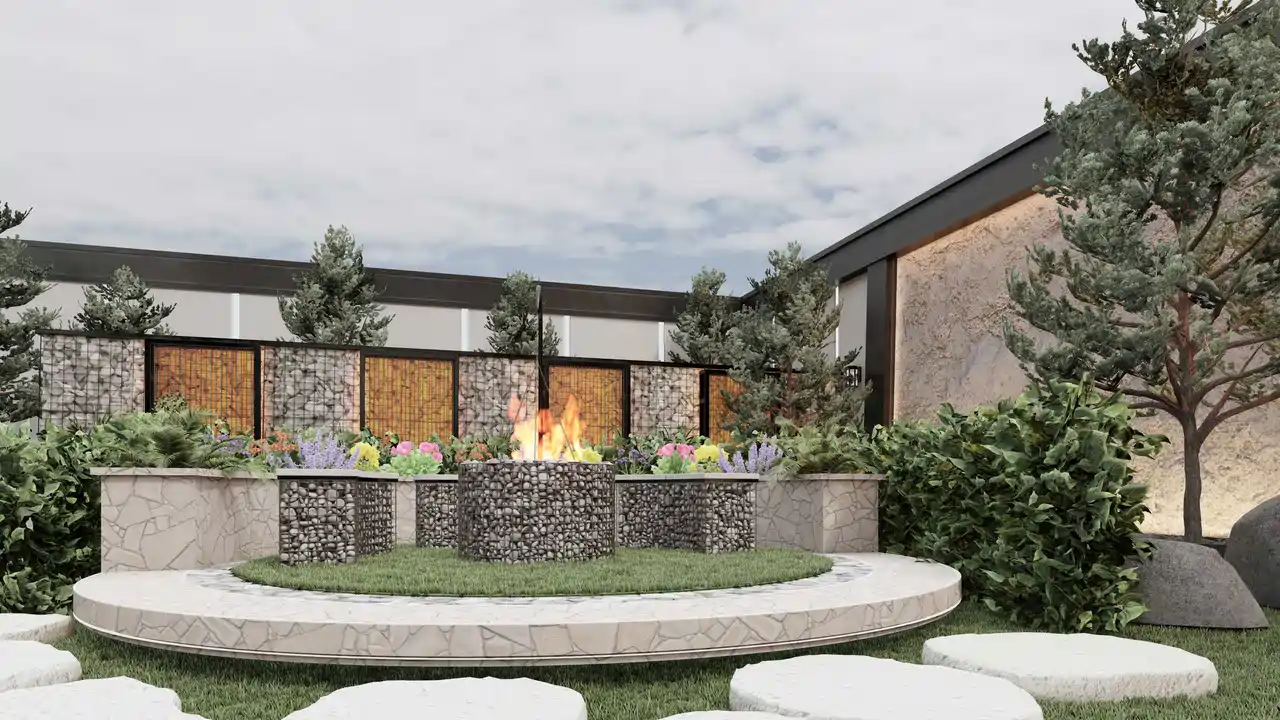 با توجه به علاقه کارفرما به فضاهای طبیعی، طراحی محوطه با حال و هوای طبیعی و جنگلی انجام شد. چالش اصلی پروژه، هماهنگ کردن این فضا با نمای مدرن ساختمان بود.