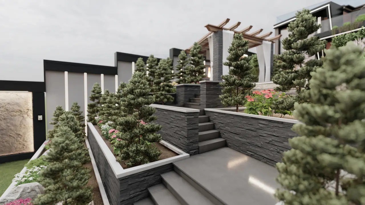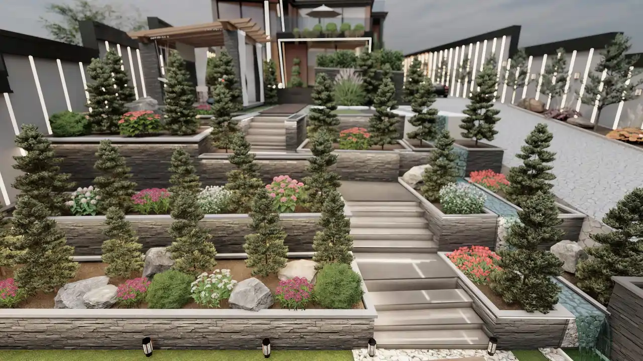 در طراحی محوطه این ویلا، توجه اصلی بر ایجاد هماهنگی میان فضای سبز و معماری ساختمان بود. تلاش کردیم محوطه به شکلی طراحی شود که هم با روحیه طبیعت دوست کارفرما همخوانی داشته باشد و هم در کنار نمای مدرن بنا، یک فضای یکدست و قابل درک برای استفاده روزمره ایجاد کند.